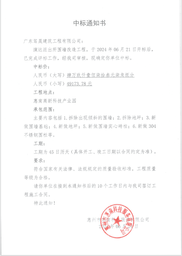 【中标通知】惠南智谷创业创新中心项目装修工程