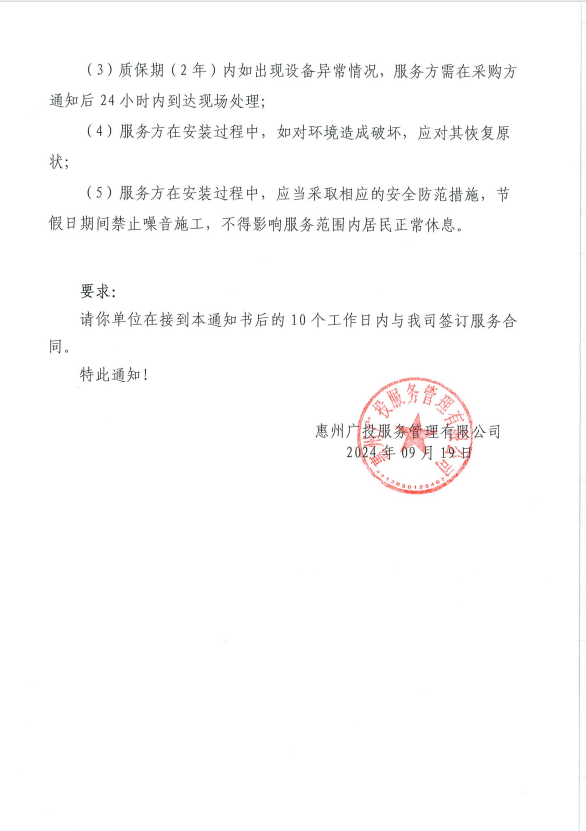【中标通知】中交香颂花园秩序服务项目