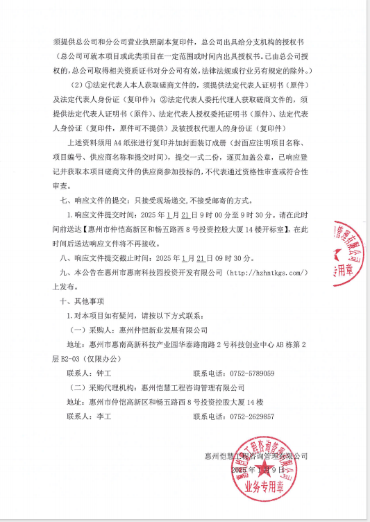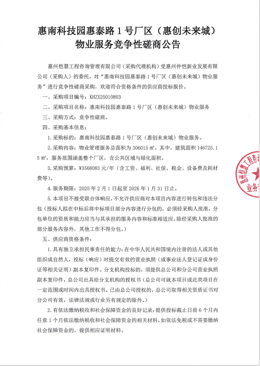 惠南科技园惠泰路1号厂区(惠创未来城) 物业服务竞争性磋商公告