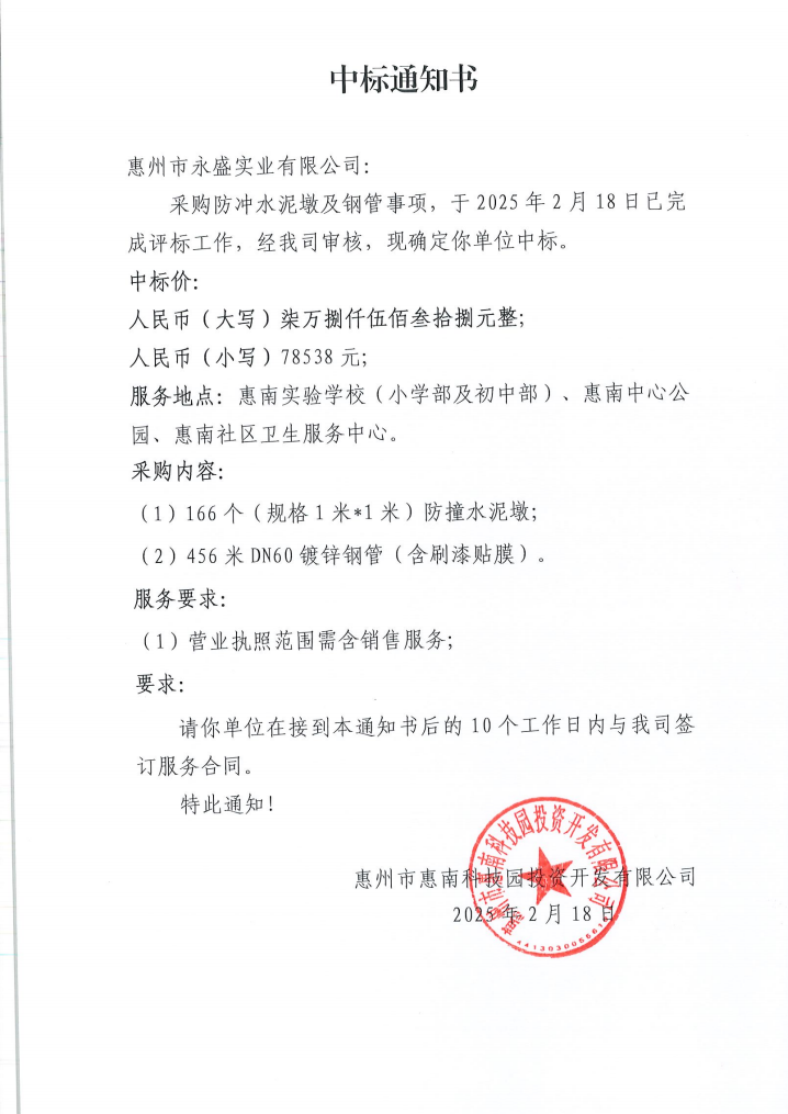 【中标通知】采购惠南科技园主干道优化及禁止停放“两轮”车辆实施改造工程