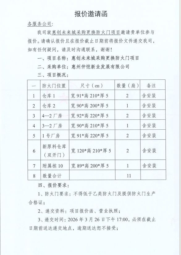 【报价邀请函】惠州仲恺新业发展有限公司办公电脑采购项目
