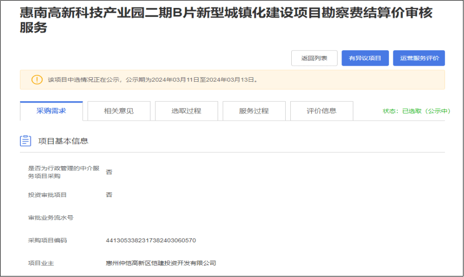 惠南高新科技产业园二期B片新型城镇化建设项目勘察费结算价审核服务