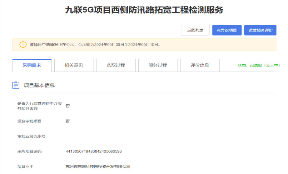 【公示】九联5G项目西侧防汛路拓宽工程检测服务