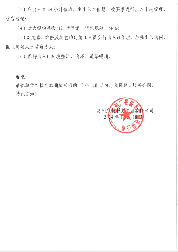 【中标通知】中交香颂花园秩序服务项目