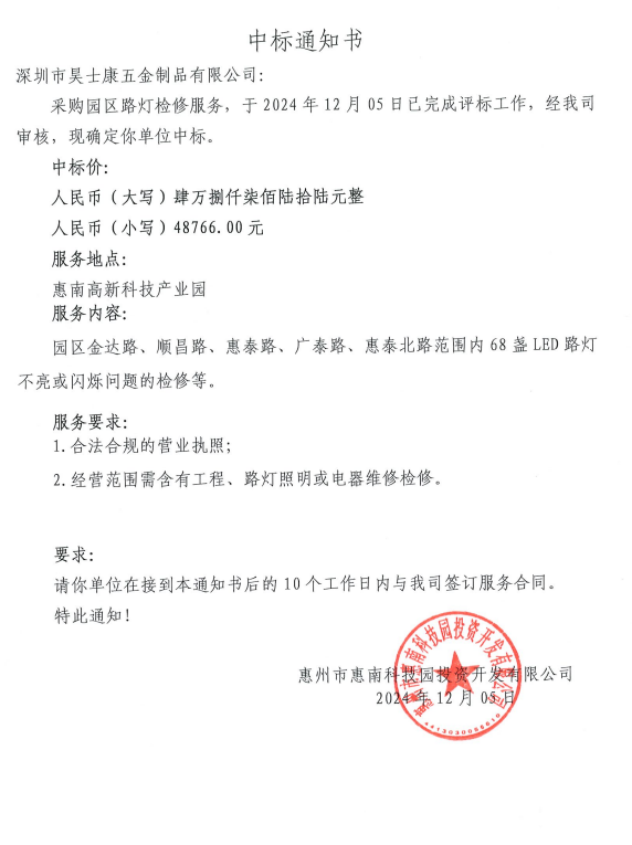 【中标通知】采购惠南科技园工人文化宫安保服务项目