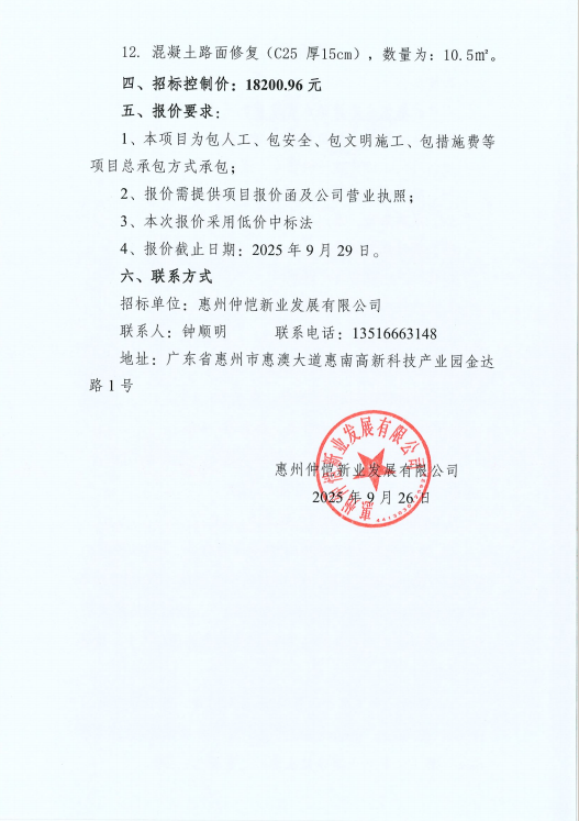 【中标结果公示】惠创未来城现有厂房屋面(2025年度第四批)防水补漏工程