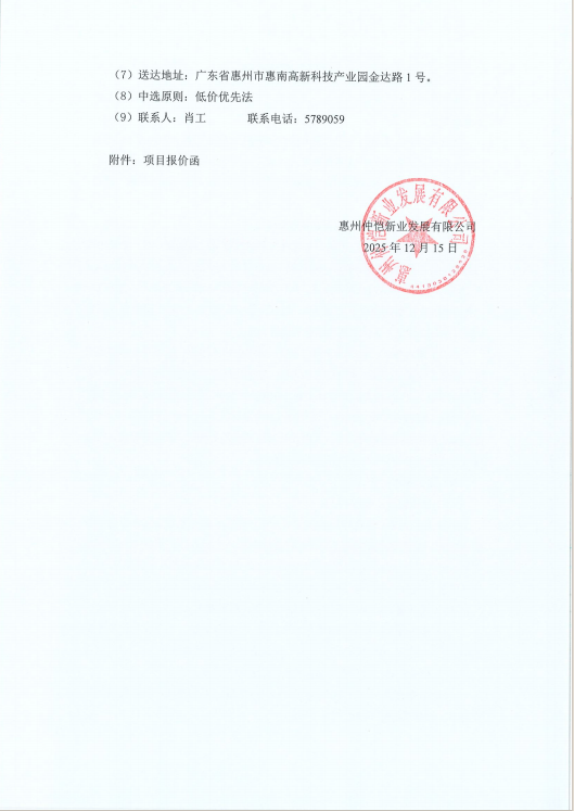 【报价邀请函】惠州仲恺新业发展有限公司2026年度办公设备及相应的办公耗材、设备维修保养服务定点采购项目